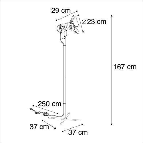 Möchten Sie eine wirklich coole Studiolampe in Ihrem Haus? Dann sollten Sie nicht mehr abgrasen! Dieser Film passt perfekt zum Aufnahme. Aufgrund der schwarzen Farbe, der Länge und der Klappen um die Lampe ist es wirklich eine Lampe, die in ein industrielles Interieur gehört. Die Lampe hat eine Höhe von 167 cm. Der Schirm hat eine Höhe von 29 cm und einen Durchmesser von 23 cm. Das Kabel hat eine Länge von 250 cm und ist mit einem Ein- und Ausschalter ausgestattet.