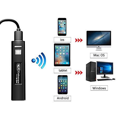 Neuestes WiFi-Endoskop, hervorragende Kompatibilität: Dank WiFi-Verbindung funktioniert das neueste Endoskop nicht nichtsdestotrotz mit Android-Smartphones (Android 2.3 später), sondern auch mit iOS-Geräten (iOS 6.0 später). Dieses Anlage ist ideal für iPhone- oder Android-Nutzer, die Inspektionsarbeiten ausführen möchten.