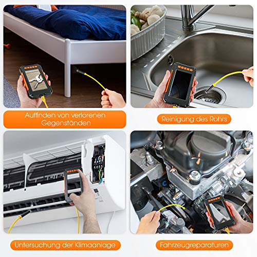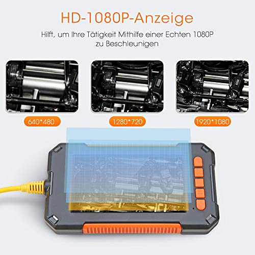 1080P HD-Klarsicht: Mit einer maximal unterstützten Rückbau von 1920 x 1080 Pixel nimmt die RAGU-Endoskop-Kamera klare Fotos auf und zeichnet im Handumdrehen hochwertige Videos auf. Auf dem 4,3-Taxe-LCD-Farbbildschirm können Sie Live-Videos weil der Inspektion anzeigen.
