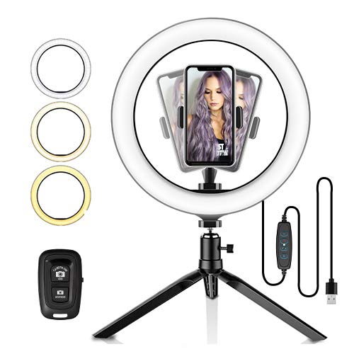 Led Ringlicht mit Stativ, Ranikeer 10 Zoll Selfie Ringleuchte mit Fernbedienung und Handyhalterung, 3 Beleuchtungsmodi…