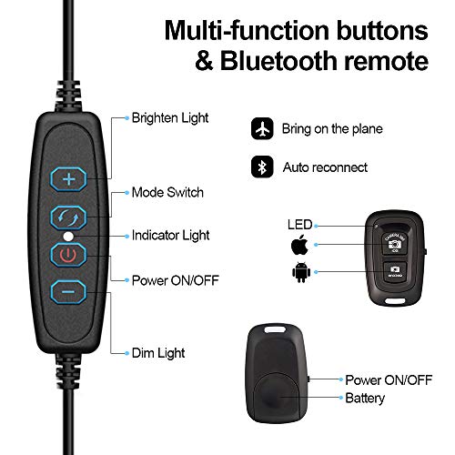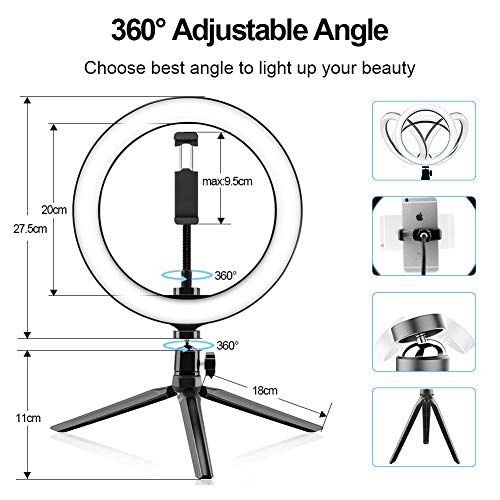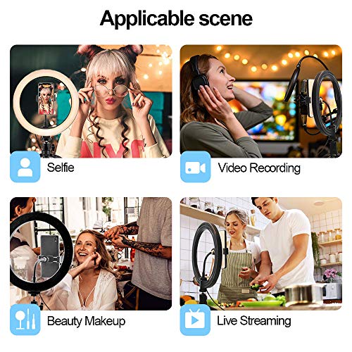 【3 Lichtfarben und 10 verschiedene Helligkeitsstufe】 Das Ringlicht verfügt über 3 Farben Beleuchtungsmodus : warm, natur, kalt. Jede Lichtfarbe kann in 10 verschiedenen Helligkeiten eingestellt werden. Das Licht kann nicht mehr da hell oder nicht mehr da warm sein, damit erfüllt Ihre Beleuchtungsanforderungen bei mehreren Gelegenheiten