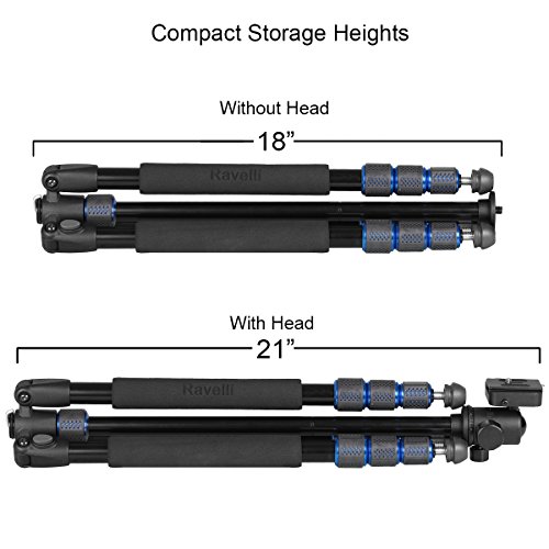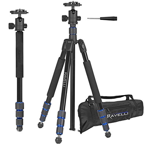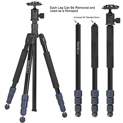 The Ravelli APGL5 is a Professional Quality Tripod providing a solid base for high-end photographic equipment. This model is made from Aluminum to create a light weight and sturdy tripod. The ball head provides smooth adjustments to any angle. The center column is gearless and the legs can be inverted for low angle shots. Dual foam grips, quick release leg locks, a quick release camera plate and rubber feet complete a very nice light weight tripod.