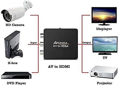 AMANKA RCA auf HDMI Adapter, AV auf HDMI Konverter AV zu HDMI Adapter Unterstützung 1080P für PC/Xbox/PS4/PS3/TV/STB/VHS…