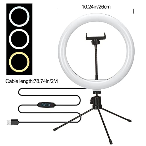 25,4 cm Ringlicht: dimmbar und verstellbar, Sie können den Lichteffekt von 10 % bis 100 % anpassen. Selfie-Ringlicht macht Sie ansprechender und charmanter.