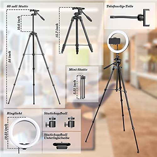 Höhenverstellbarer Stativ und Drehbares Winkel: die Höhe kann von 15,7 Abgabe (41.5 cm) bis 60.7 Abgabe (160cm) eingestellt werden. Sowohl das Ringlicht als bekannt als der Handyhalter können 360°gedreht werden. Es ist praktisch für Sie, den am besten geeigneten Winkel für die Abzug zu finden.