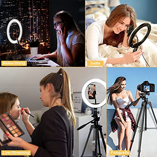 Ringlicht 10″ LED Selfie Ringleuchte mit Extendable Stativ 3 Farbe und 10 Helligkeitsstufe Dimmbare Tischringlicht für Tiktok Make-up YouTube Live-Streaming