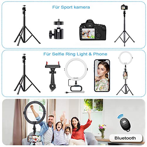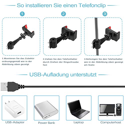 ✨【Weit verbreitet in mehreren Szenen】Auf dem Ringlicht und dem Stativ befindet sich ein 360 °drehbarer Handyhalter(passt für die meisten Telefone mit einer Breite von 3,5 bis 6,1 Taxe),sodass Sie die Ringleuchte leicht auf den gewünschten Winkel einstellen und Ihre Schönheit beleuchten können. Es bietet Ihnen die perfekten Platzierungsorte, die Sie für Selfies, Video-Chat, Live-Streaming, Produktanzeige, Online-Unterricht, Live-Beauty-Videos usw. benötigen.