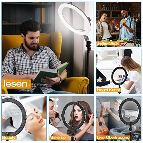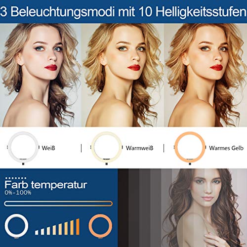 ✨【Dimmbares 12 „Selfie-Ringlicht】AFI upgrade 12“ -Ringlicht verwendet die neueste Technologie, um mehr weiches Licht mit 3-Farben-Beleuchtungsmodus zu emittieren: Weiß, Warmweiß und Warmgelb. Mit 10 einstellbaren Helligkeiten können Sie Helligkeit und Modus einstellen von 1% bis 100%, um Ihre angenehmste Helligkeit zu erreichen. Das 12-Taxe-Ringlicht verfügt über 120 augenschützende LED-Leuchten, einen weichen Lichteffekt zum Schutz Ihrer Augen, abgehärtet für Ihre Haut.