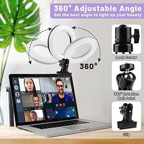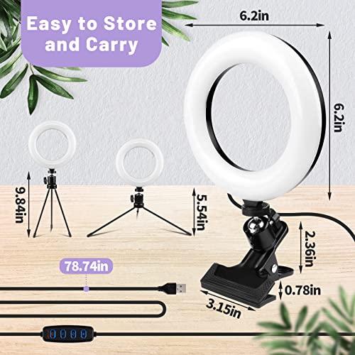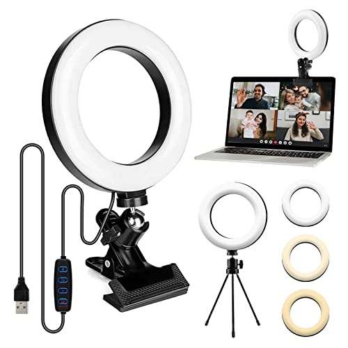 Ringlicht Laptop Videokonferenz LED Ring Light mit Stativ & Clip, 6.2″ Selfies Ringleuchte Laptop 3 Lichtfarben 10 Helligkeitsstufen für Video-Streaming Videoanruf Meeting Tiktok Make-up Vlog