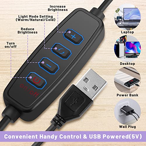 💡【USB-sichere Stromversorgung】 Ringlicht laptop mit 2 m langem USB-Kabel. Plug-and-Play. Es ist mit den meisten Geräten kompatibel, die USB-Anschlüsse stützen, wie z. B.: Laptops, Powerbanks, Desktops oder USB-Ladegeräte. Sie können den Netzschalter steuern und in Ihren bevorzugten Beleuchtungsmodus eintauschen. 5V Eingangsspannung, geringer Stromverbrauch, sehr stabil. Hinweis: Aufladen wird nicht unterstützt.