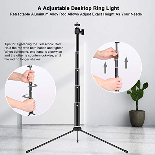 【10 Zoll LED Ringlicht】 Außendurchmesser:26cm, Innendurchmesser 20cm,120-teilige LED-Lampen leuchten von allen Seiten präzise, ohne Probleme mit Schatten; 3200K-5600K Farbtemperatur, Dimmbar mit 3 Farbmodi (warm / Natur / kalt) und 10 Helligkeitsstufen für jeden Modus, kann leicht an die unterschiedliche Beleuchtungssituation angepasst werden