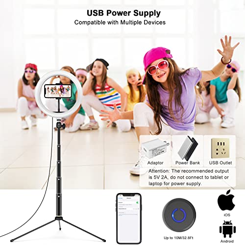 Ringlicht mit Stativ, 10“ LED Selfie Ringleuchte mit Fernbedienung, Handyhalter und 3 Farbe und 10 Helligkeitsstufen…