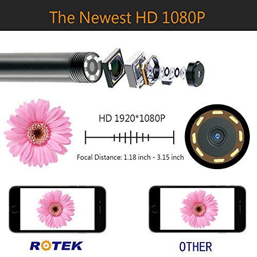 WiFi Endoskop, ROTEK Inspektionskamera, 2.0 Megapixel 1080P HD Endoskopkamera,IP68 wasserdichte Sanitär Schlange Kamera…