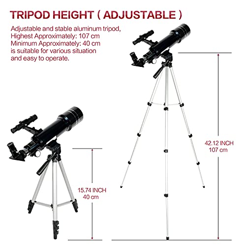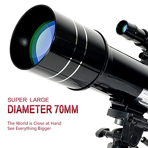 Supergroße Blende 70mm: Unser Refraktor Teleskop ist mit einem 70mm Großobjektiv ausgestattet, das im Vereinbarung zum 50mm Modell ein helleres Sehfeld bietet, die Welt zum Greifen nah und alles größer und weiter entfernt. Gleichzeitig kommt fast kein zusätzliches Gewicht hinzu.