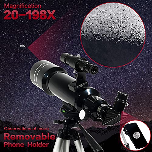 RUNPRISM astronomische Teleskop 400 * 70 mm es ist ein Mondforschungsartefakt Für die Installation sind keine Werkzeuge erforderlich, einfach zu bedienen, tragbar und leicht zu transportieren, und Anfänger können problemlos loslegen.