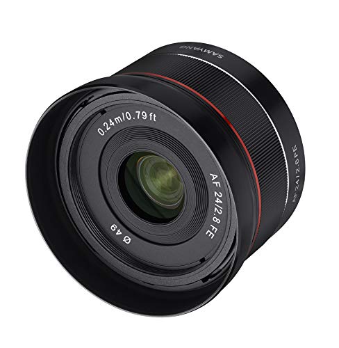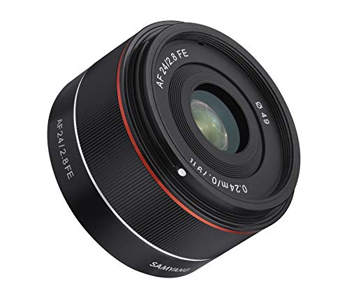 Das Samyang AF 24 mm F2.8 Kompaktobjektiv ist die neueste Zusatz der Samyang-Hintereinanderstellung von überaus beliebten Vollformat-Autofokus-Objektiven für Sony E-Mount-Kameras. Diese 24 mm bietet hervorragende Bildqualität, eine breitere Sicht qua die Samyang 35 mm F2.8 und ein schnelles und leises Autofokus-System. Das neue Samyang 24 mm F2.8 Objektiv wurde speziell für spiegellose Sony Full-Frame-Kameras mit Fokus auf drei Hauptmerkmale: optische Qualität, Tragbarkeit und leiser Autofokus. Dank fortschrittlicher Fertigungstechniken bietet Samyang gerade einen breiteren Blickwinkel ohne Einbußen bei Qualität oder Leistung. Optisch besteht das Objektiv jeder 7 Elementen in 7 Gruppen. Seine Konstruktion wurde optimal für Portabilität angeordnet und liefert hohe Gewinnung von der Mitte bis zu den Ecken des Bildes. 3 asphärische / 2 hohe Brechungsindexelemente und Samyang’s Ultra-Multi-Beschichtungstechniken werden verwendet, um chromatische Aberrationen und unnötige Lichtstreuung zu minimieren. Leise, schnelle und genaue Autofokussierung machen dieses Objektiv perfekt für unheimliche Straßenaufnahmen. Sein Gewicht von derzeitig einmal 93,6 g und seine unauffällige Größe machen ihn ideal für unterwegs. Ein minimaler Fokussierabstand von 24,1 cm und ein wesentlicher Weitwinkel machen dieses Samyang-Vollformat-Objektiv zum idealen Objektiv für Astrofotografie und Landschaftsfotografie. Für die Sony Alpha a6000 / a5000 Hintereinanderstellung oder Wahlmöglichkeit Sony APS-C Kameras entspricht das Objektiv ca. 36 mm und bietet die gleichen Funktionen mit einem moderateren Weitwinkel.