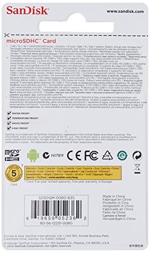 Lieferumfang: SanDisk Micro Secure Digital High Capacity (microSDHC) 8GB Speicherkarte (microSDHC Speicherkarte)