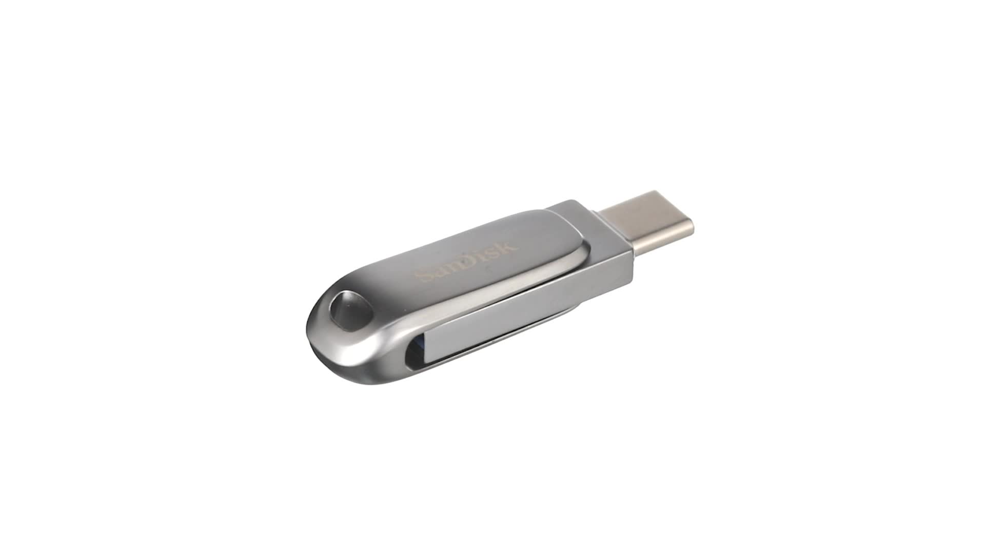 Der vollmetall, 2-in-1-USB-Stick, ist beidseitig einsteckbar; er hat auf einer Seite einen USB-Bursche-C-Stecker und auf der anderen einen herkömmlichen Bursche-A-Stecker