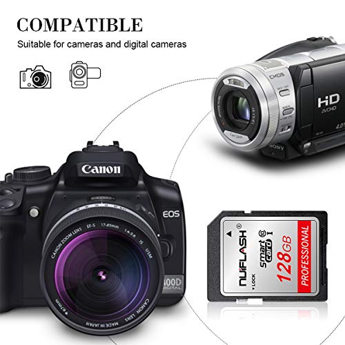 👍 [Hohe Kapazität] 128-GB-SD-Karten bieten eine Kapazität von bis zu 128 GB, unbegrenzt Platz für Tausende von Schnappschüssen und stundenlange Aufzeichnung von Full-HD-Videos, sodass Sie sich keine Sorgen mehr machen müssen, dass nicht genügend Speicherplatz zur Verfügung steht.