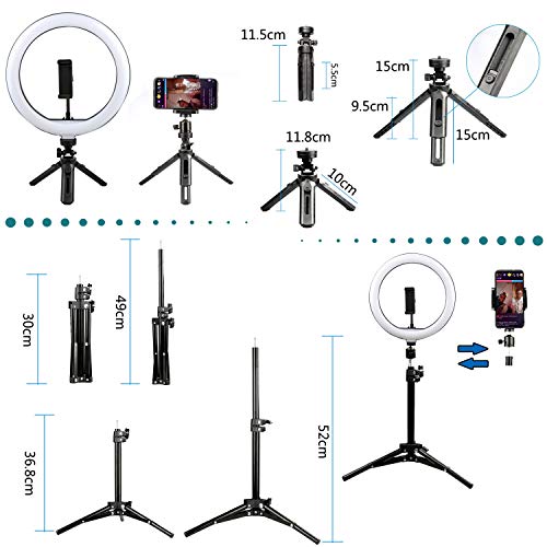 [Ein Ringlicht, das angenehm für die Augen ist und auf verschiedene Arten eingestellt werden kann] Das 10-Steuer-Ringlicht ist mit 170 augenschonenden LED-Lichtquellen ausgestattet. Sie haben die Kontrolle über 10 Dimmstufen zwischen 2800K und 7200K. Da 3 Lichtmodi zur Auswahl stehen (weiß, gelb, warm), können Sie nicht aber den Lichtmodus frei detachieren, sondern auch die Helligkeit regulieren. Sowohl die Handy- als auch die Lichthalterung des Ringlichts sind in 360 ° vollständig drehbar.