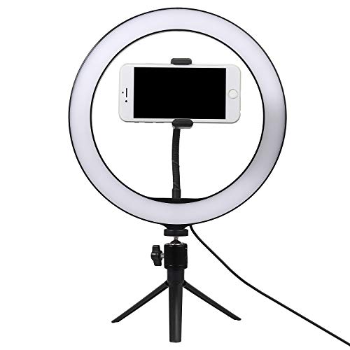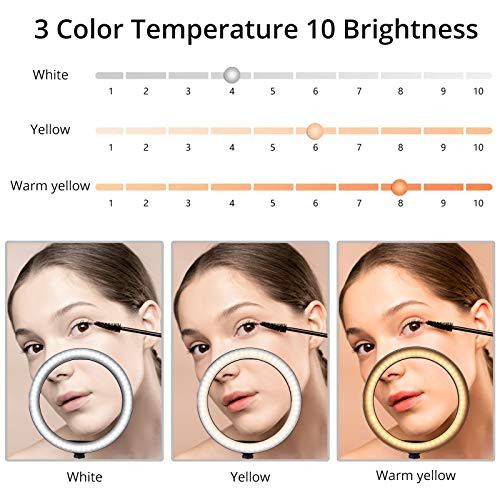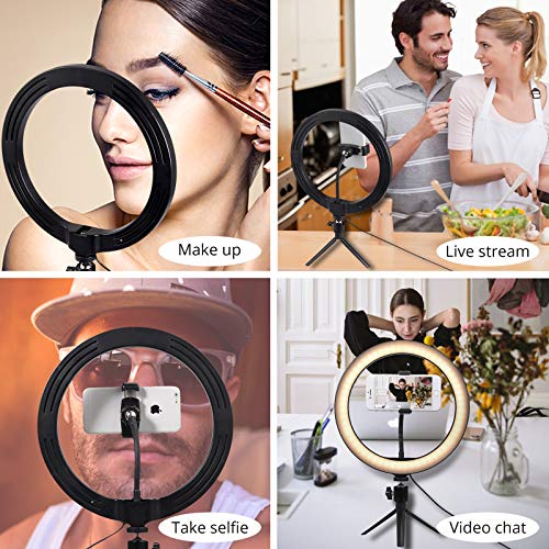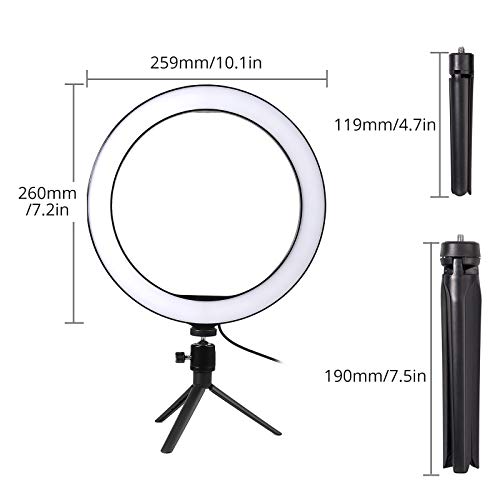 Selfie Ringlicht für Handy Tisch, COLFULINE 10 “ Ringleuchte Stativ mit Fernbedienung Handyhalter, 3 Farbe und dimmbare 10 Helligkeitsstufen, Ringleuchte für Make-up/Video-Photo/Selfie/Live-Streaming