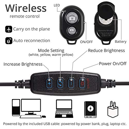 ☀【3 Lichtmodi 10 einstellbare Helligkeit】– Allseitiges Fülllicht mit hoher Helligkeit, mit 3 Lichtmodi: weiß, umgedreht weiße, umgedreht. Es gibt 10 einstellbare Helligkeit. Es kann zum Aufsaugen von Videos, Fotos, Live-Auftritten, Schminken, Nägeln, Lesen usw.