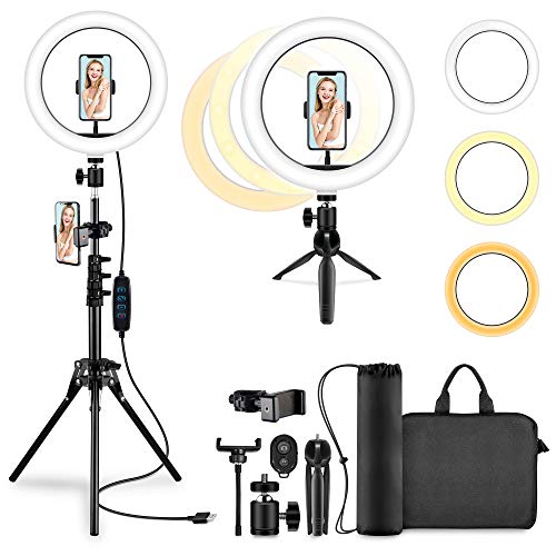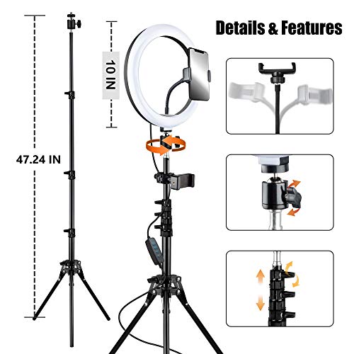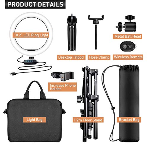 🐳【Produktdetails】LED Ringlicht Kit umfassen: 1 x 10,2 Verzinsung LED-Ringlicht, 1 x 1,2 m Lichtständer, 1 x Desktop-Ständer, 1 x Smartphone-Halterung, 1 x Erhöhung Handyhalterung, 1 x Kugelkopf, 1 x Selfie-Controller, 1 x Tragetasche, 1 x Lichthalter-Paket. Professionelles Aufnahmegerät, entfernt Schatten und sorgt sofort für attraktiveres Portrait.