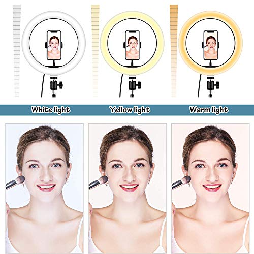 Das Licht ist einstellbar: mit dimmbaren LED-Lampen, 3 Farben-Beleuchtungsmodi: weiß, warm gelb und warmweiß. Nicht mehr da Beleuchtungsmodus hat 10 einstellbare Helligkeit zur Auswahl, erfüllt sämtliche Ihre Bedürfnisse unter verschiedenen Umständen. Es ist die perfekte dimmbare Tagesbeleuchtung, um sämtliche unschmeichelhaften Schatten zu demontieren