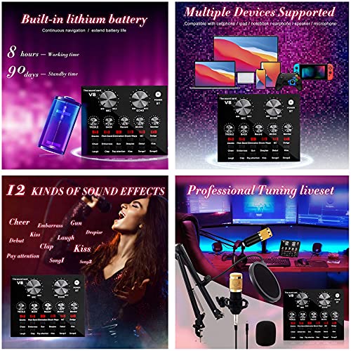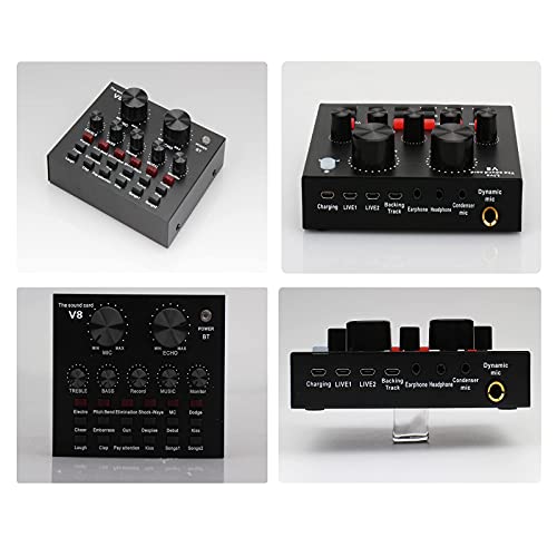 【Live-Soundkarte】: Die V8-Soundkarte ist eine professionelle externe Soundkarte, die Live-Streaming, Singen, Aufsaugen und andere Funktionen unterstützt. Es bietet eine klarere und stabilere Klangqualität. Es enthält 6 Modusauswahlen, 12 Elektroeffektoptionen, 12 lustige Soundeffekte, 7 verschiedene Gameplays, 3 Klangübergänge. Es hilft, die Live-Atmosphäre einfach anzupassen. Lassen Sie schöne Lieder und Ihre Stimme singen wird lauter sein.