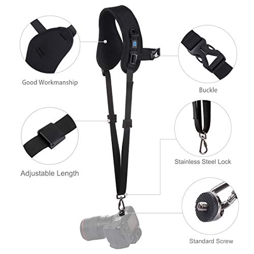 Kameragurt mit Schnellentriegelung, rutschfest, weiches Nylon, atmungsaktiv, gebogen, mit Metallhaken an Stelle Spiegelreflexkameras / DSLR-Kameras