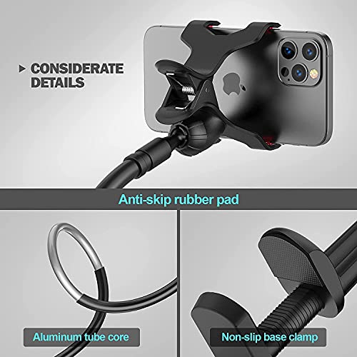 【Starker Schutz】 Der Schwanenhals-Handyhalter verwendet einen verbesserten 1,2 cm dicken und langlebigen Arm aus Aluminiumlegierung (andere 1 cm), der stärker ist als der übliche Handyhalter auf dem Markt und Ihr Smartphone vor Stürzen oder Bewegungen schützen kann. Die Gesamtlänge des Stützarms beträgt 80 cm und der Arm ist in eine „S“-Form oder rund gebogen, um die Stabilität zu verbessern und Stöße zu reduzieren.