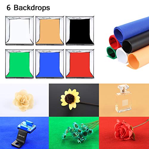 Fotostudio 24″/ 60 cm Tragbares Schießzelt Lichtzelt Dimmbare 120 LED Faltbare Fotografie Studio Kit Beleuchtung Lichtbox Leuchtkasten mit Handy Stativ, 6 Farben Hintergründe