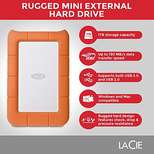 - Robuste externe 1-TB-LaCie-Mini-Festplatte mit USB 3.0.