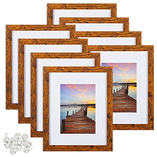Sindcom Bilderrahmen, 20,3 x 25,4 cm, anhand hochauflösendem Glas, Holzstruktur, statt dessen Wand oder Tisch, rustikales Braun, 8 Stück