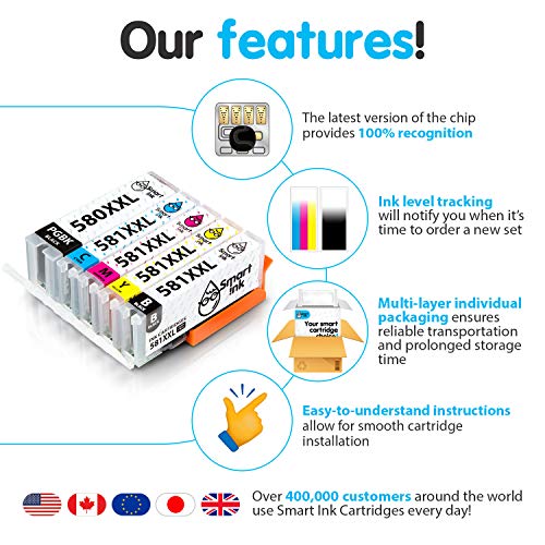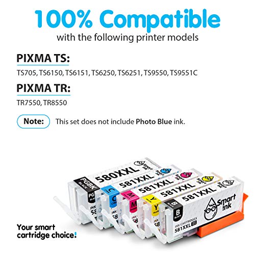 Smart Ink Kompatible Druckerpatronen als Ersatz für Canon 580 XXL 581 XXL PGI 580XXL CLI 581XXL (PGBK & BK/C/M/Y) Patronen Multipack für Pixma TS705 TS6151 TS6150 TR8550 TS6250 TR7550 TS6251