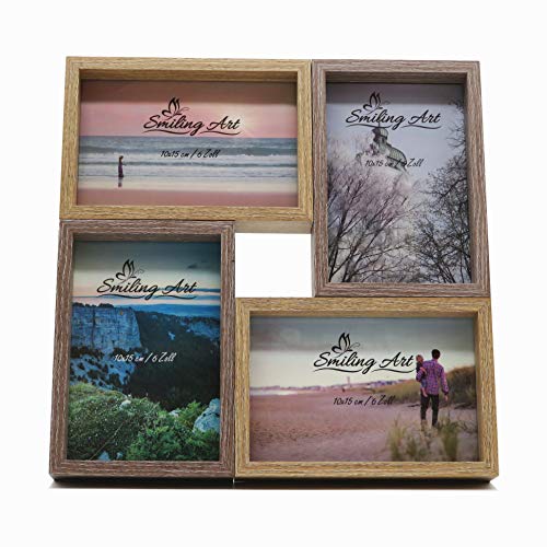 Smiling Art Bilderrahmen Fotorahmen Collage für 4 Fotos, Foto Collage aus MDF Holz mit Glas (Braun+Dunkelbraun, 4x10x15…