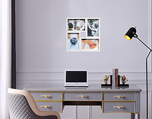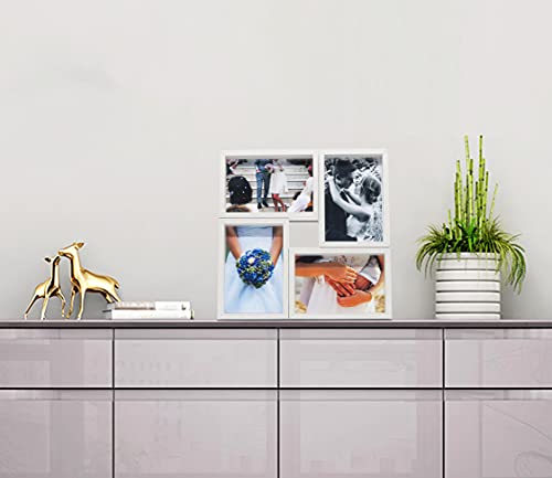 Diese Bilderrahmen Collage hat die Maße 28x28x3,0 cm. Der Rahmen ist geeignet für 4x10x15 cm (4x4x6 Inch / 4×6 Zoll) Fotos. Alle 4 Fotos können einzeln eingelegt und ausgetauscht werden.