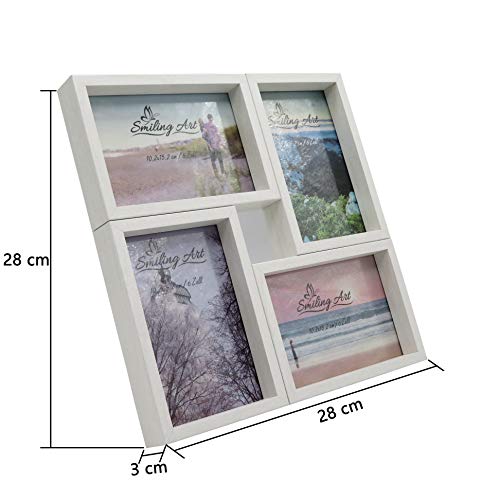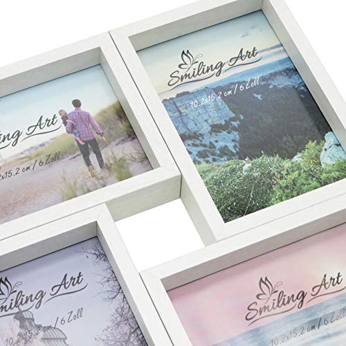 Smiling Art Bilderrahmen Fotorahmen Collage für mehrere Fotos, Foto Collage aus MDF Holz mit Glas (Weiß, 4x10x15 cm)