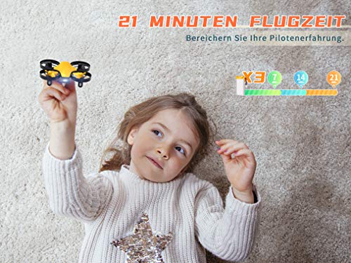 SP350 Mini Drohne, Quadrocopter mit 3 Akkus für 21 Minuten Flugzeit, RC Drone, Mini Helikopter mit Kopfloser Modus…
