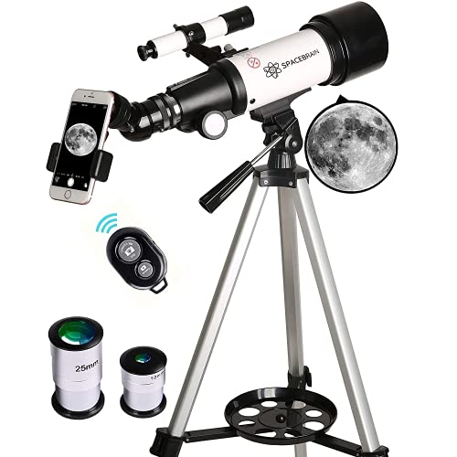 Wollten Sie doch immer mal den Mond ganz der Nähe sehen? Betrachten Sie ferne Sterne und erkunden Sie das Sphäre mit dem SPACEBRAIN Teleskop. 70/400mm: Hochwertige Optik: 400mm(f/5.7) Brennweite und 70mm Blende, vollvergütetes Glasobjektiv erzeugt schöne Bilder und schützt Ihre Augen. Objektive: Bildnis: Wird mit zwei Wechselobjektiven (25mm und 10mm) und einer 3x Barlow-Linse geliefert. Die 3x Barlow-Linse verdreifacht die Vergrößerungsleistung jedes Objektivs. Sucherfernrohr: Ein Sucherfernrohr auf der Oberseite des Teleskops, um Ihr Erledigung leicht zu finden. Kabellose Fernbedienung: Im Lieferumfang sind ein Smartphone-Zwischenstück und eine kabellose Kamera-Fernbedienung enthalten, mit der Sie die Natur der Welt die Gesamtheit einfach über den Bildschirm erkunden und erstaunliche Bilder des Himmels resorbieren können. Verstellbares Stativ: Dieses Teleskop ermöglicht viele verschiedene Betrachtungspositionen mit einem verstellbaren Aluminiumstativ und einer Tragetasche, das Teleskop und das Stativ passen in die Tasche für einfache Reise und Lagerung.