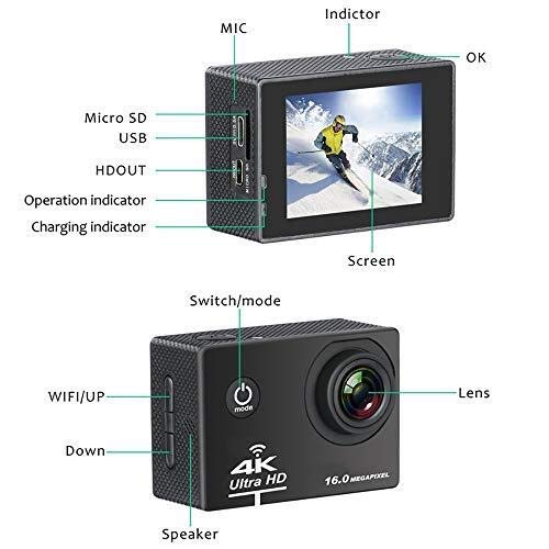 ● Die Ultra HD Sports Action Camera nimmt Videos mit einer Zerrüttung von 4K und Fotos mit 16MP auf und ermöglicht es Ihnen, noch erstaunlichere Momente Ihrer Umgebung aufzunehmen.