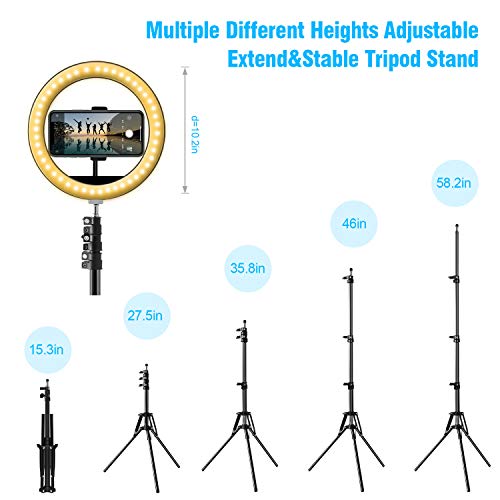 Dimmbares Ringlicht: 3 Farben-Beleuchtungsmodi: warmes Licht, kaltweiß und Tageslicht. Jeder Modus hat 10 Helligkeitsstufen, insgesamt 30 Optionen. Ein Selfie-Ringlicht mit Dimmer ermöglicht es Ihnen, die Beleuchtung an Ihr Motiv anzupassen und Ihnen bessere Fotos zu machen.
