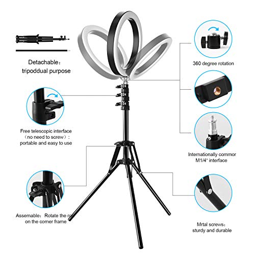 Der 360°-Drehwinkel des Ringlichts ermöglicht es Ihnen, den idealen Winkel zu finden, um Ihr Gesicht oder den ganzen Körper zu beleuchten, und verfügt über 3 Beleuchtungsmodi und 10 einstellbare Helligkeitsstufen.