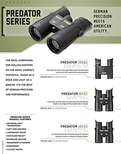 Machen Sie Steiners Predator Fernglas zu Ihrer Go-to-Optik auf Ihrer nächsten Jagd oder Ausflug in die Natur. Mit optimierter Lichtdurchlässigkeit Handlungsschema der neuesten Generation bei schlechten Lichtverhältnissen, können Sie sich auf hellere Bilder und erhöhte Lichtdurchlässigkeit verwaist. Zusammen mit der Color Adjusted Technologie verbessert der Kontrast in Ihrem Spitzen-Sicht-Empfindlichkeitsbereich, wodurch es einem Jagdflugzeug leichter ist, Spiel in jeder Umgebung zu finden. Außerdem macht der Fast-Close-Focus es einfach, kristallklare Schärfe zu erhalten, ohne das Fokusrad zu drehen, von 1,8 m bis unendlich. Werfen Sie dieses leichte Fernglas in Ihre Ausrüstungstasche, wenn Sie draußen gehen. Dank des kompakten Dachprismen-Designs ist diese Optik weniger sperrig, so dass sie in Ihre Tasche passen und nicht im Unauffindbar sind, demgegenüber demgegenüber eine gute Foto und ein breites Sichtfeld erhalten. Steiner macht vertrauenswürdige Optik für die entscheidenden Momente des Lebens. Egal was Sie betrachten, wir bemühen uns, Ihre Sicht zu modifizieren, damit Ihnen nichts entkommt.