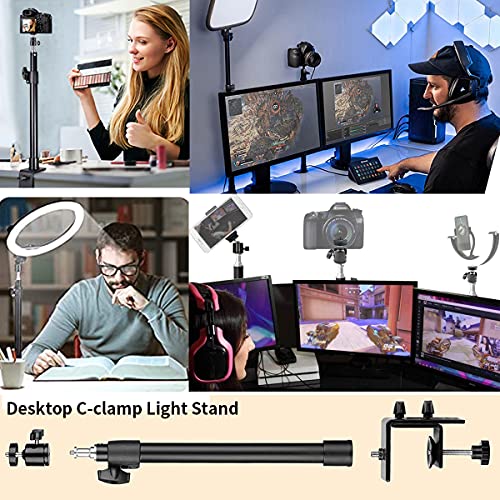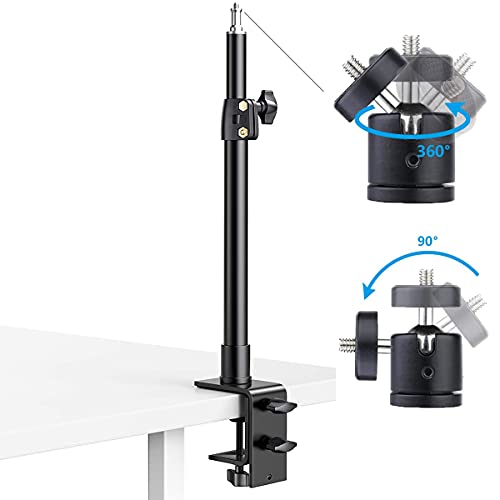 Sumeber Tisch Lichtstativ Klemmstativ Clip Stand mit 1/4″ Schraube 35-60cm einstellbar Licht Einbeinstativ mit 360°Kugelkopf für Fotografie Streaming Video Aufnahme (ST20)