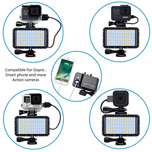 Perfekte Kompatibilität: Suptig Tauchlichter eingebauter 5200 mAh Lithium-wiederaufladbare Batterie, kompatibel per GoPro Hero 9 / Hero 8 / Hero 7 / Hero 6 / Hero 5 / Hero 4 / Hero 3 / Hero 3 + / Hero Session / Gopro Max, bekannt als kompatibel per Smartphones, Action-Kameras ansonsten Digitalkameras, SLR usw.