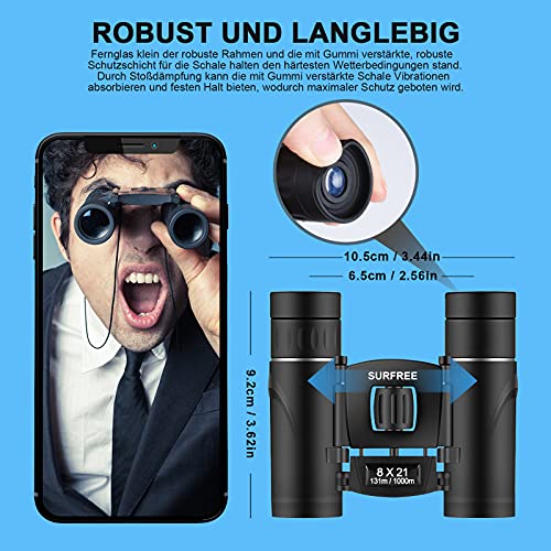 Surfree Ferngläser,8 * 21 Fernglas Für Kinder Und Erwachsene,Faltbares,Fernglas Kinder Mit Lanyard Und Reinigungstuch…