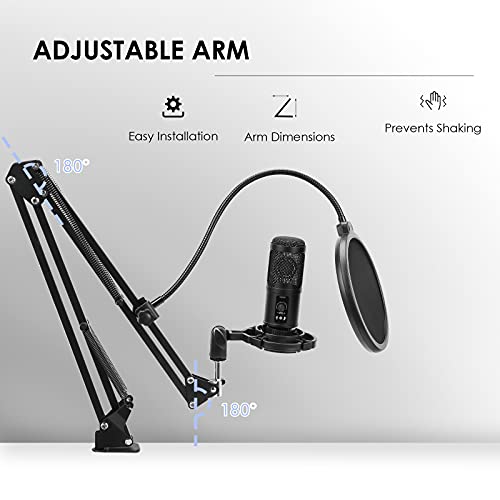 [Einstellbarer Mikrofonständer] – Der vertikale Mikrofoncomputer ist mit einem stabilen Mikrofonständer, einem Schutznetz und einer Schwammabdeckung ausgestattet. Sie können das Mikrofon nach Forderung auf einen geeigneten Winkel eichen, um das Mikrofon erschütterungsfest und geräuschlos zu halten, indem unnötige Vibrationen effektiv reduziert werden.