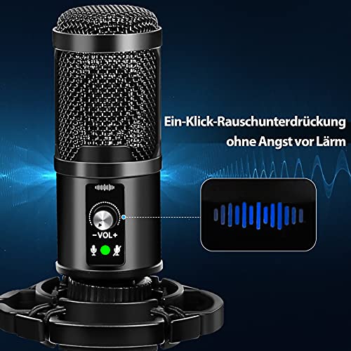 [Hochwertiger Rauschunterdrückungseffekt] – Das PC-Kondensatormikrofon verwendet eine Nierencharakteristik und fokussiert die Schallquelle direkt vor dem Mikrofon, wodurch Umgebungsgeräusche effektiv beseitigt und der Klang klarer und besser werden kann.