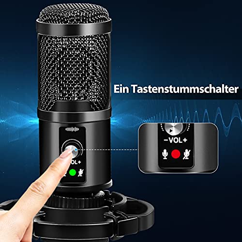 SWANEW Kondensatormikrofon USB Mikrofon Professional Podcast Mikrofon mit Stummschaltung, 192KHz /24Bit Studio Nieren…
